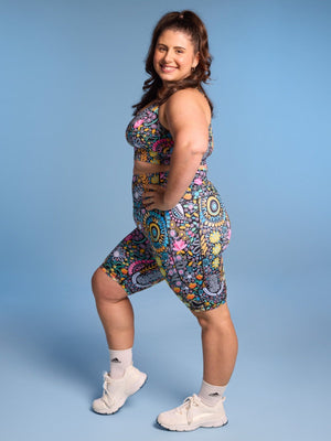 • Kirra (a proud Bunuba & Yamatji woman) wears a size M bike shorts. She is 175cm and usually wears an AU12 bottom.