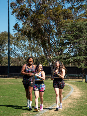 • Steph wears a size 2XL running shorts. She is 180cm and usually wears an AU16 bottom.