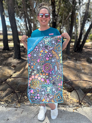 Meet your new gym buddy. Our Coastal Wildflowers Gym Towel is designed to make every workout smoother with its clever corner zip pocket that keeps your phone, keys and small essentials safe and out of the way. Whether you are hitting the gym, heading out for a cycle, powering through a reformer class or even needing an emergency baby burp cloth (mums, we see you), this sports towel is the perfect companion for any sweaty occasion.