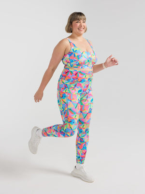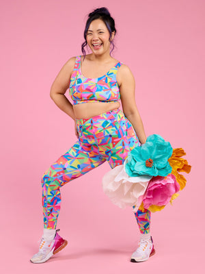 I love this workout top. It gives all the support of a sports bra with a fun, fashionable look. The zip in the front combined with the hook back means I can easily slip this on and off inspite of mobility issues. I wish there were more fabric options in this crop top design.