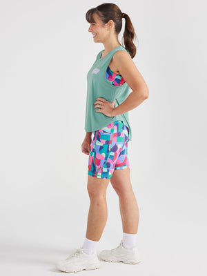 Made from gloriously soft bamboo viscose that feels cool, silky and lightweight, making it perfect for hot days, running, sweaty workouts and all your joyful movement moments. With a flattering curved hem and slightly extended armholes, it layers effortlessly over your favourite Mama Movement crop while keeping you comfortable and confident through every bend, stretch and adventure.