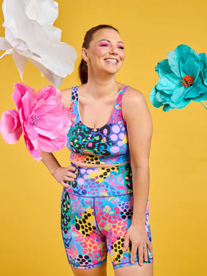 • Explore the Electric Leopard print, available in matching bottoms, kids leggings, and other styles. Click here to see more of the range!