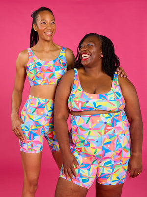 - Explore the Rainbow Daisies print, available in matching bike shorts, and other styles. Click here to see more of the range!