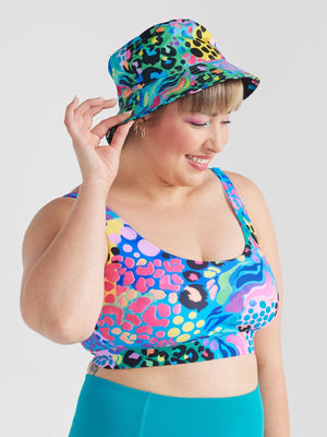 We’ve taken our two most loved summer prints, Electric Leopard and Night Polka by Australian queen of colour Kasey Rainbow, and combined them into one super cute, stylish and practical reversible bucket hat. With two looks in one, this fashion forward bucket hat is perfect for beach days, park hangs, holidays and everyday summer outfits.