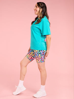 This tee is crafted from 100% premium organic cotton for a lightweight, super-soft, and breathable feel, keeping you cool and comfortable all day long. With its relaxed, boxy fit, this versatile tee pairs perfectly with bike shorts and leggings for an effortless on trend look. Or wear with a colourful skirt for a cute summer look!