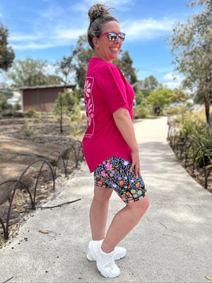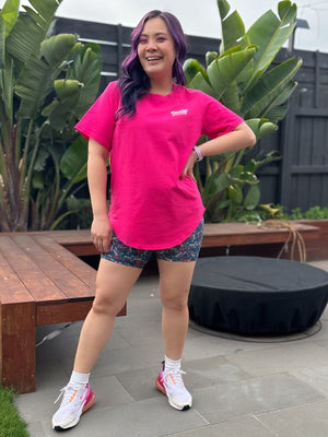 This tee is crafted from 100% premium organic cotton for a lightweight, super-soft, and breathable feel, keeping you cool and comfortable all day long. With its oversized fit and a flattering curve hem, it pairs effortlessly with bike shorts and leggings for an on trend active look. Perfect for hot days, school pick ups, Pilates sessions and everything in between.