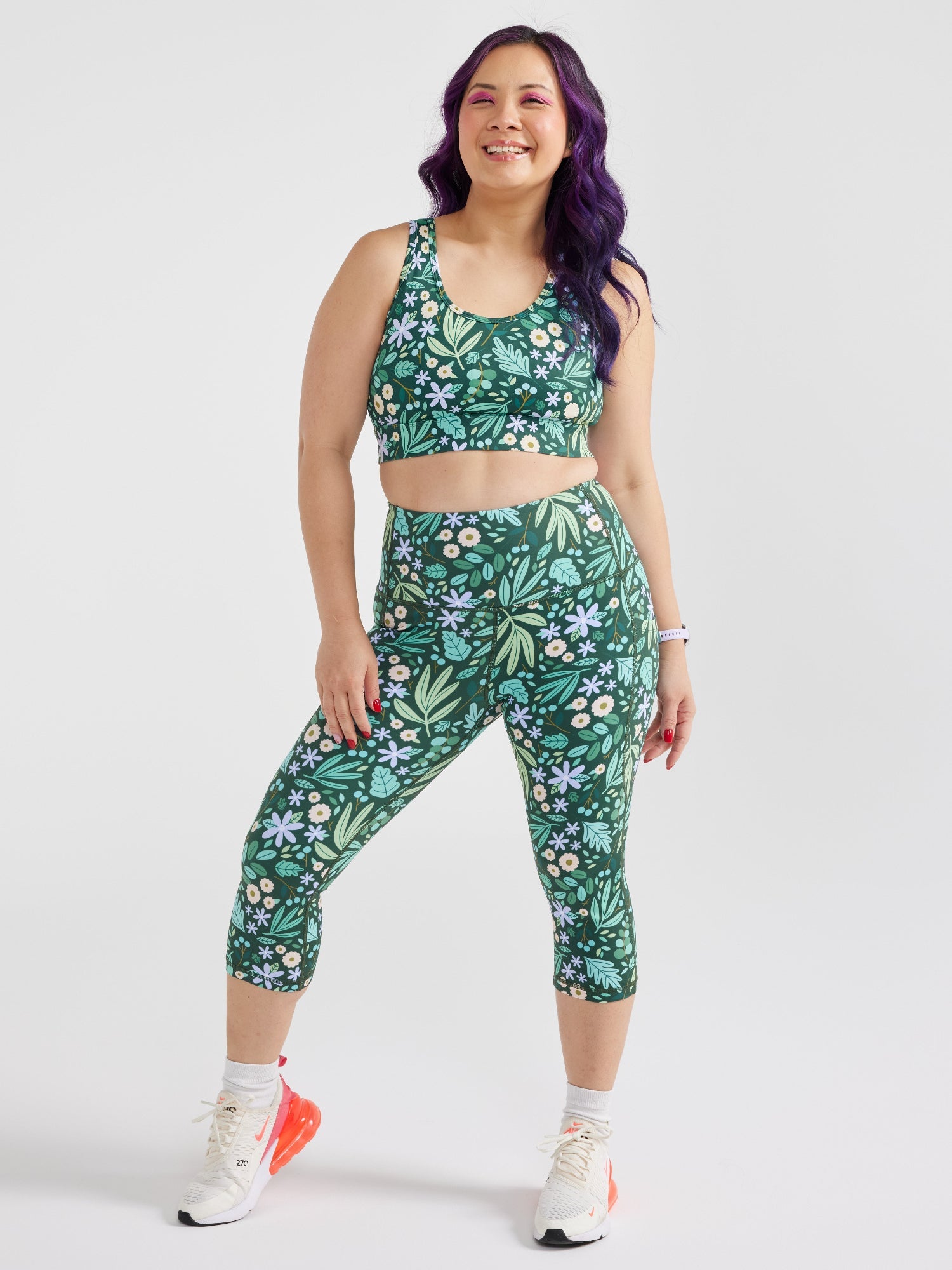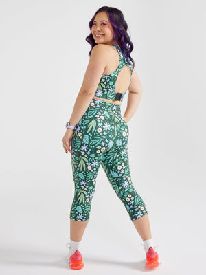 I bought LEAVES AND BLOOMS bike shorts and hook back crop. I have just finished my 45min pilates session and the shorts have not moved out if position! I feel supported and comfortable. The crop is great, it hugs around your ribs firmly so it dosnt pull on your neck and shoulders. I am glad I have spent the money to get exercise gear that I feel and look good in.